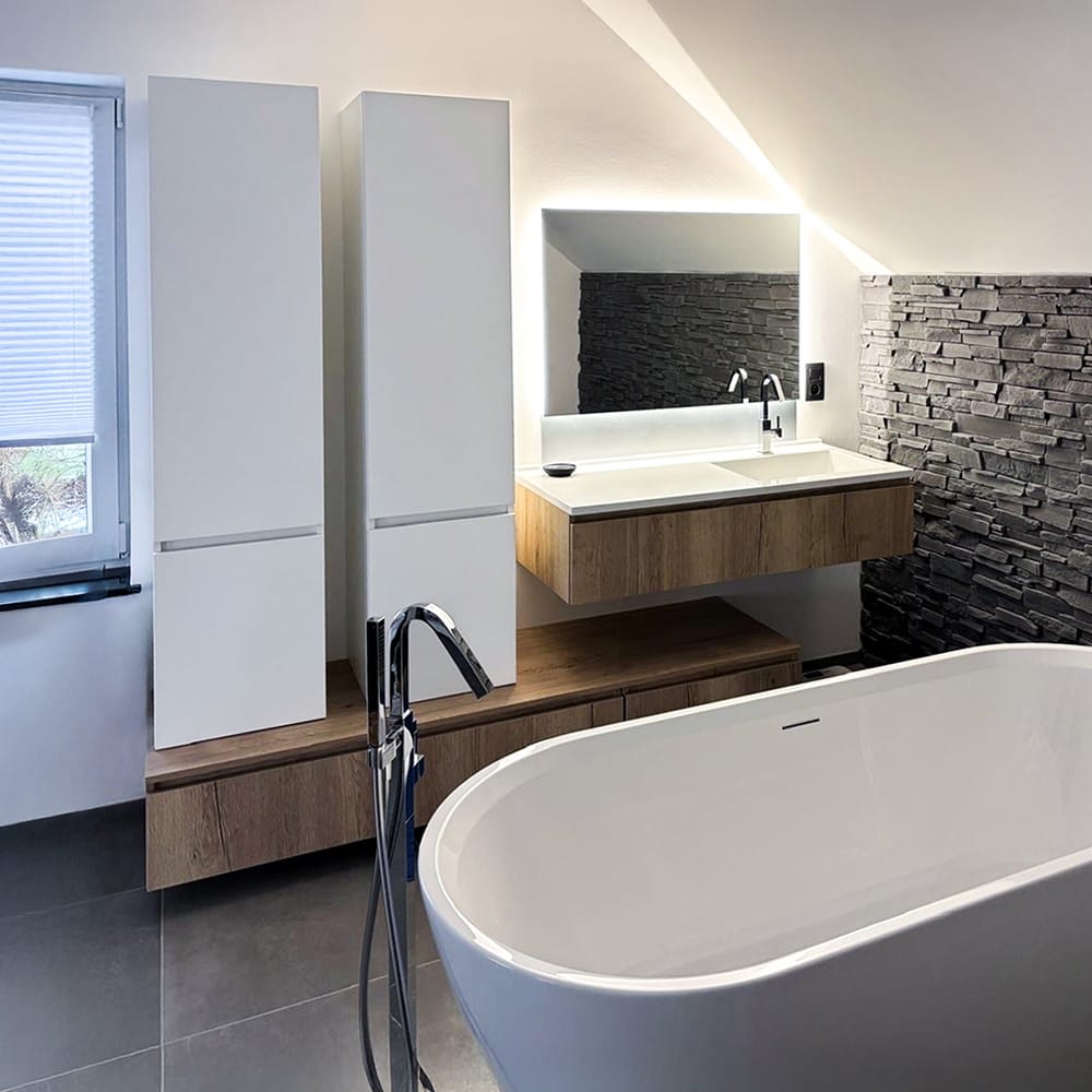 Dans le monde du design d’intérieur, la salle de bains est devenue bien plus qu’un simple espace fonctionnel. Elle est désormais un lieu de détente et de bien-être, où l’esthétique joue un rôle crucial. Aujourd’hui, nous vous présentons une réalisation exceptionnelle qui combine élégance et fonctionnalité grâce à une baignoire en pose libre Riho, des robinets Treemee et des meubles Vika.